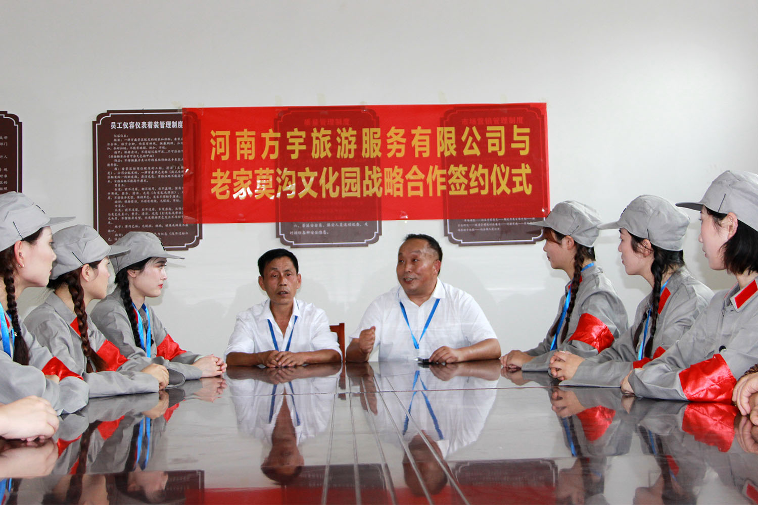9月(yuè)14日,河南(nán)方宇旅遊服務有限公司帶領的企業(yè)有洛陽市(shì)欽明油脂食品有限公司、洛陽完達山事(shì)業(yè)部河南(nán)如此牛供應鏈管理有限公司、青花瓷酒駐洛陽辦事(shì)處、三道菌糧食用菌餅幹、鄭州十道菜餐飲管理有限公司、河南(nán)盛仁農業(yè)科技(jì)有限公司、河南棗樹文化傳媒有限公司、洛陽市(shì)導遊協會(huì)、維羅納國(guó)際模特大賽河南(nán)組委會(huì)共同組織的紅(hóng)色文化之旅走進老家莫溝。