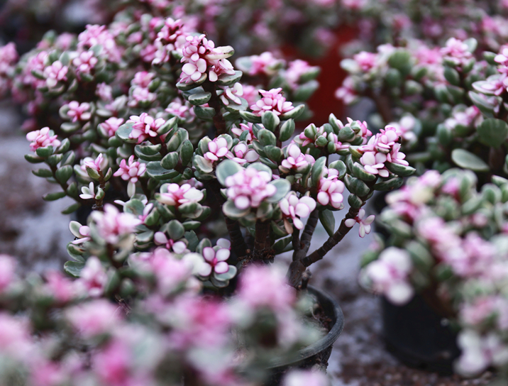 走進周江福的植物(wù)園,各種多(duō)肉植物(wù)琳琅滿目,既有飛(fēi)鳥閣、金虎、幸福柱等大型品種,也有白(bái)鳥、虎刺梅、玉露等體态嬌小(xiǎo)的多(duō)肉品種,不時有顧客慕名前來觀賞購買。