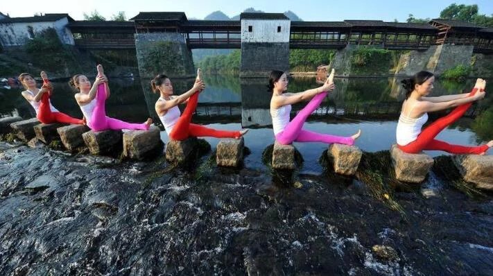 8月(yuè)20日,江西(xī)省婺源縣5名瑜伽達人,演繹各種造型的水(shuǐ)上(shàng)瑜伽技(jì)藝,從(cóng)而讓這一(yī)高(gāo)雅體型訓練技(jì)藝融入大自(zì)然,形成天人合一(yī)的美麗景象。