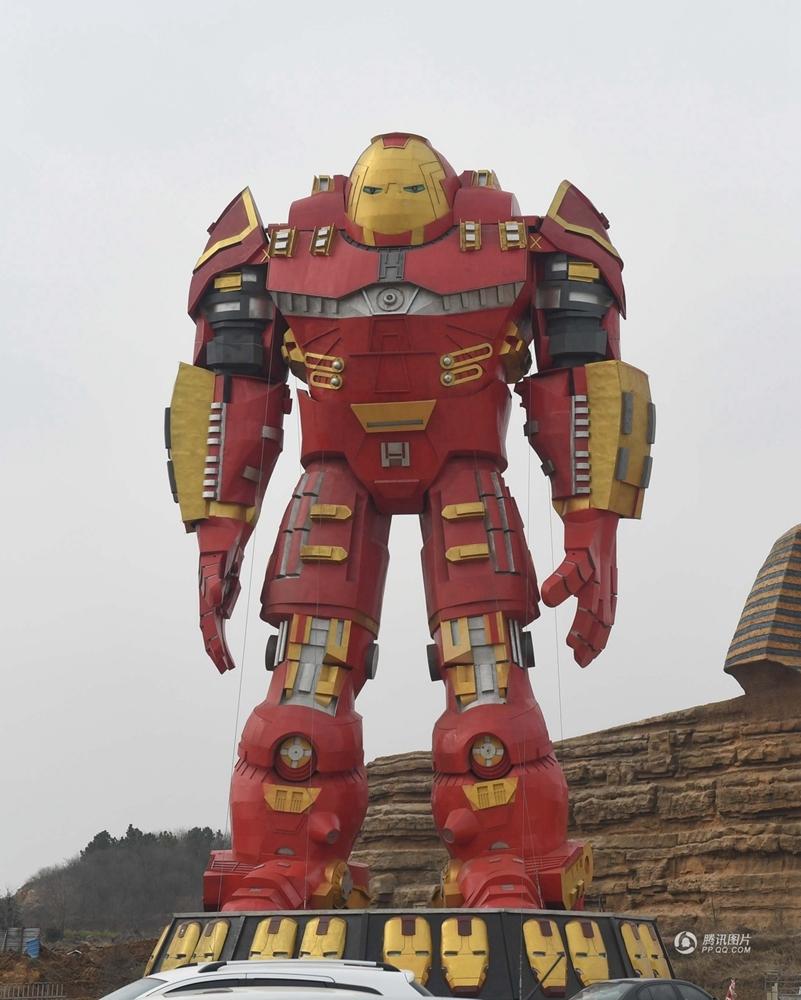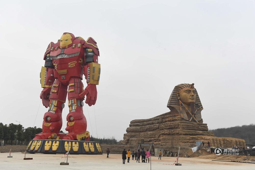 安徽現巨型鋼鐵俠為(wèi)“山寨獅身人面像”站崗