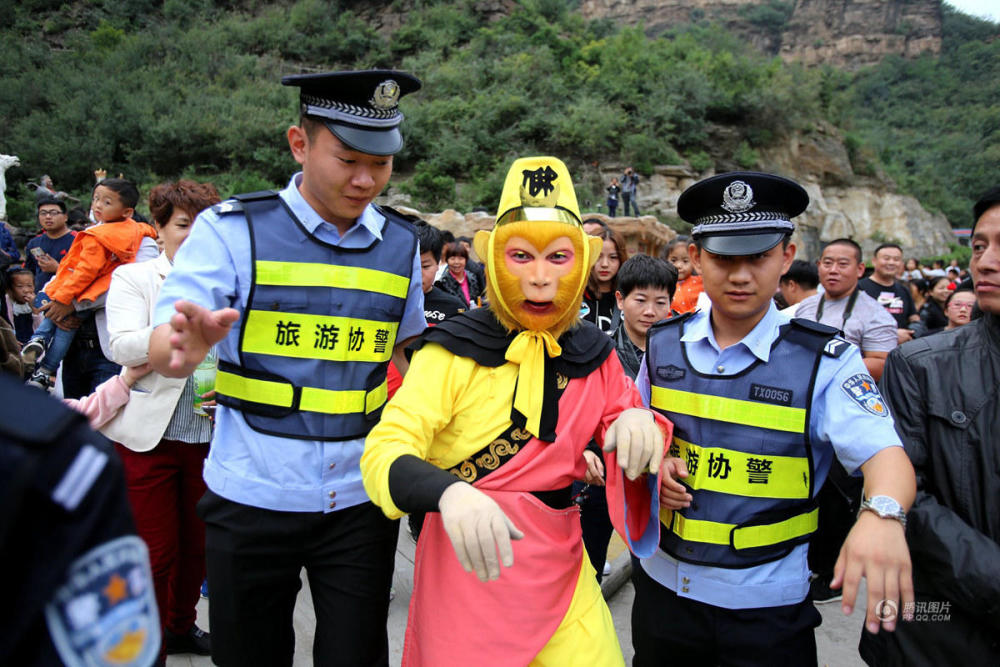 10月(yuè)6日,河南(nán)濟源五龍口,曾因開(kāi)大巴被交警拿住而意外走紅(hóng)網絡的“孫大聖”遭上(shàng)千遊客圍追堵截,男女老少争相(xiàng)求合影,一(yī)時間失了“神通(tōng)”難以脫身,導緻無法按時上(shàng)場演出,隻好求助旅遊警察前來解圍。