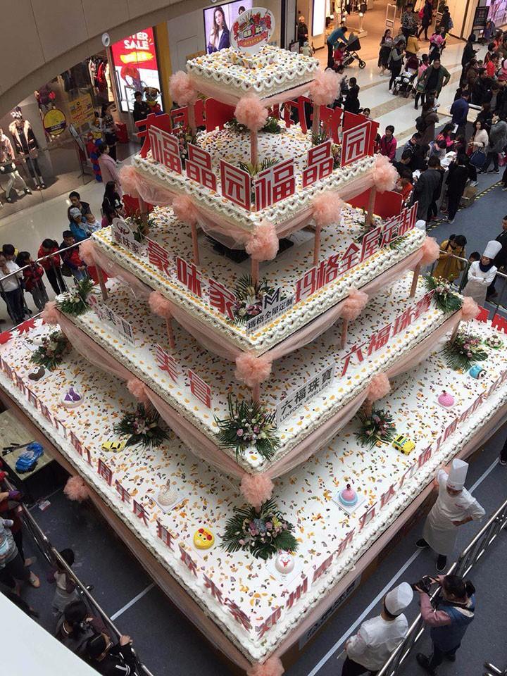 11月(yuè)11日,鄭州老品牌福晶園精心打造的巨型生(shēng)日蛋糕在某商店缤紛呈現。據負責人介紹,本次所做的蛋糕共計5層,每一(yī)層都是長(cháng)方體形狀,長(cháng)度分别是6mX6m,4mX4m ,3mX3m ,2mX2m ,1mX1m,像一(yī)座房子似的,相(xiàng)當于一(yī)條寬1米長(cháng)66米的巨型蛋糕平鋪,現場可以供30000人一(yī)起品嘗!
