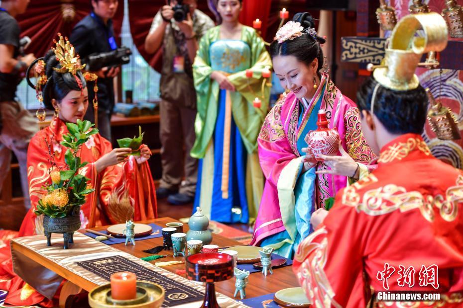 12月(yuè)2日,2017三亞目的地婚禮博覽會(huì)在海南(nán)三亞舉行,一(yī)場富有民(mín)俗特色的盛唐婚禮秀《伴》讓所有與會(huì)者沉浸在美輪美奂的中國(guó)傳統婚禮文化中,活動通(tōng)過場景還(hái)原,再現盛唐時期的隆重婚慶場面,新人重新演繹新娘出閣、卻扇禮等唐朝婚禮中的重要流程,讓現場觀衆頓時穿越千年(nián),夢回唐朝。