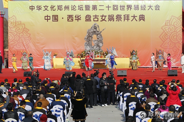 國(guó)家新聞出版總署原署長(cháng)于友(yǒu)先宣讀(dú)祭文後,舉行了隆重的獻爵、上(shàng)香、敬獻花籃和創世文化民(mín)俗展演,節目包括:鼓樂表演《開(kāi)天盤鼓》,笙簧合奏《娲娘頌》,原始巫舞表演《經挑綿延》,傳統墜子書《盤古女娲創世紀》,經歌(gē)和戲曲聯唱《經戲頌祖》,誦舞《盤古女娲頌》六個(gè)部分。通(tōng)過精彩的民(mín)俗節目展演,向與會(huì)專家學者展示了盤古開(kāi)天辟地、肇立乾坤,女娲補天造人、化育萬物(wù)。