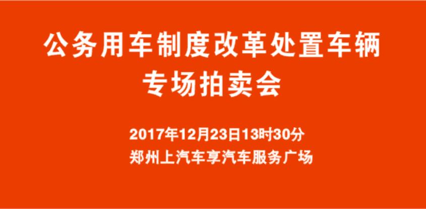 2017年(nián)12月(yuè)23日13時30分,由河南(nán)星光(guāng)秀文化傳媒承辦的公務用車制度改革處置車輛專場拍賣會(huì)在上(shàng)汽車享汽車服務廣場車享拍鄭州拍賣大廳公開(kāi)拍賣,此次拍賣公務用車104輛。