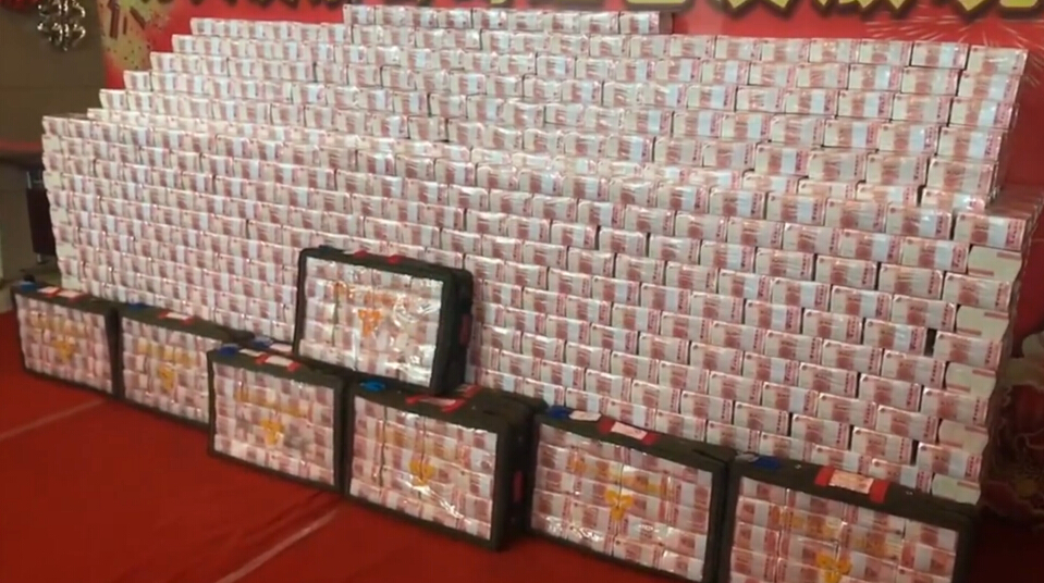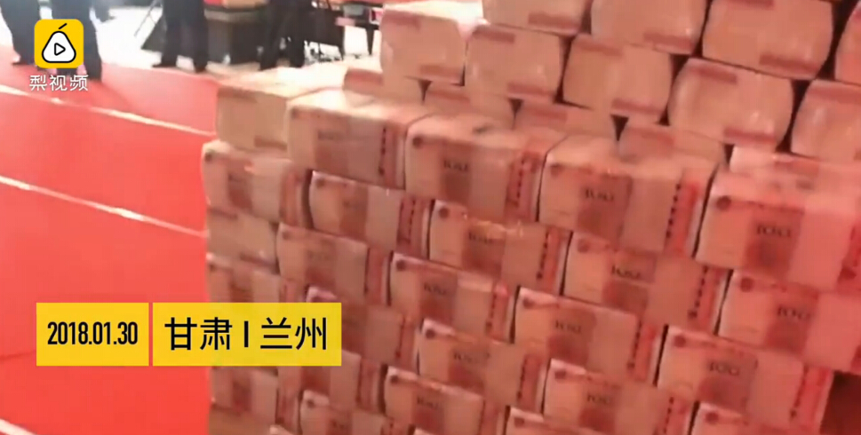 1月(yuè)30日,甘肅蘭州,某公司給每位員(yuán)工(gōng)發了5萬元紅(hóng)包,年(nián)終獎現金堆成一(yī)堵牆。