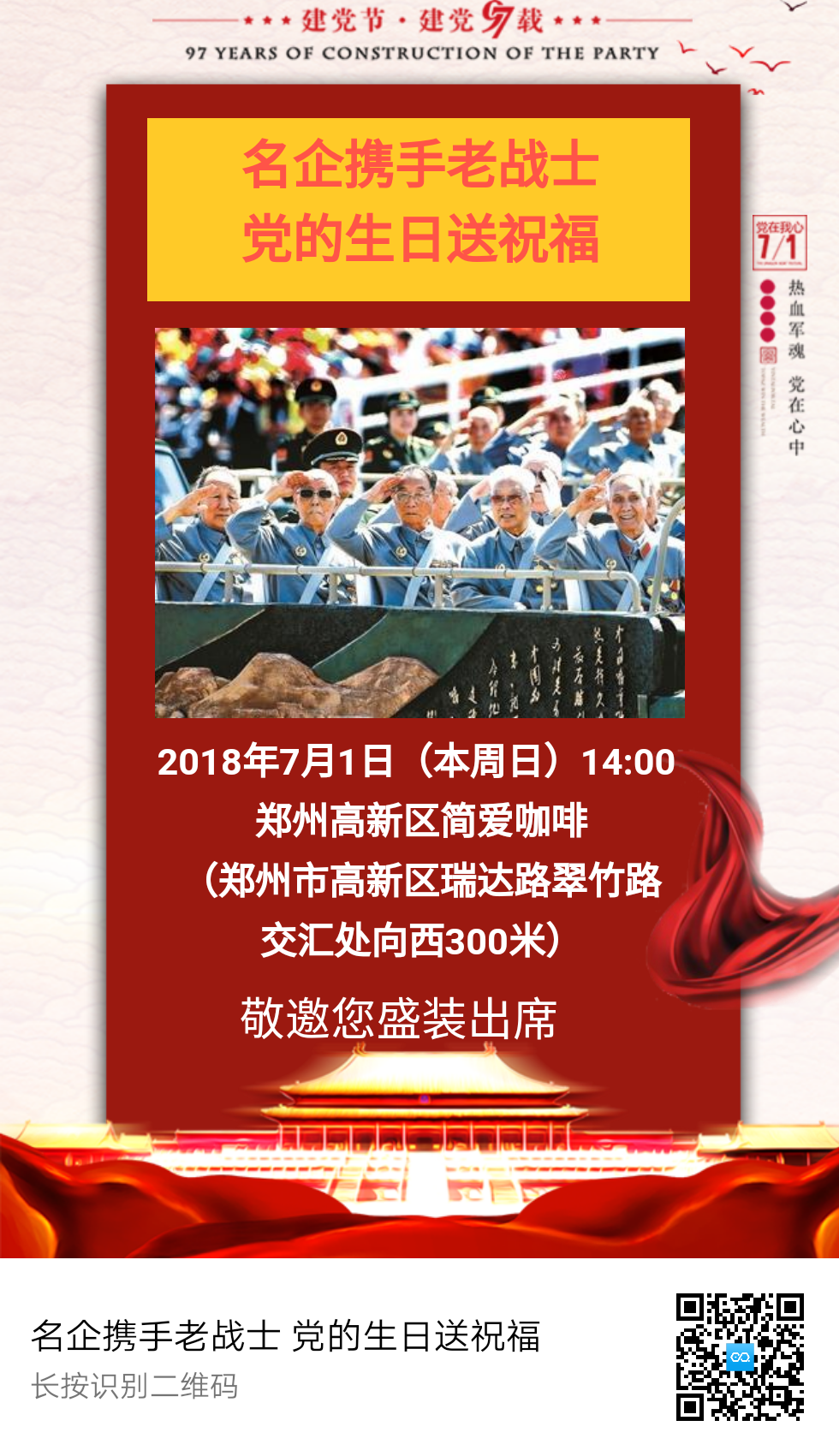 7月(yuè)1日,在高(gāo)新區簡愛咖啡即将舉行維羅納國(guó)際模特大賽名企攜手解放(fàng)鄭州老紅(hóng)軍慶祝黨的97歲生(shēng)日。