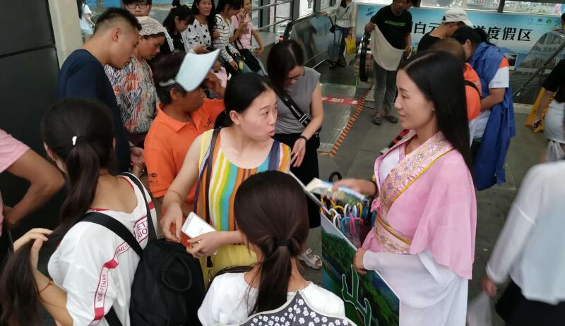 7月(yuè)26日下(xià)午5點,在鄭州地鐵1号線上(shàng)出現驚喜的一(yī)幕,七個(gè)身著(zhe)古裝的紅(hóng)粉佳人如仙女下(xià)凡一(yī)般,穿梭于鄭州會(huì)展中心、紫荊山和二七廣場地鐵站,在人潮擁擠的地鐵站出口和鄭州最為(wèi)繁華的二七廣場商業(yè)圈,市(shì)民(mín)們把七個(gè)美女圍的水(shuǐ)洩不通(tōng),原來是方城(chéng)縣七峰山景區派來的7位仙女,給鄭州市(shì)民(mín)送清涼來了隻。見(jiàn)她們每人手裡(lǐ)舉著(zhe)一(yī)個(gè)牌子,每個(gè)牌子上(shàng)都是一(yī)副七峰山景區碧綠幽藍的水(shuǐ)上(shàng)風景畫(huà),七位仙女拼起了一(yī)副“七峰山清涼世界”的唯美畫(huà)面。美景配美人,瞬間人氣爆棚,更難得的是,她們手裡(lǐ)拿著(zhe)七峰山景區送來的十萬元門(mén)票,正免費(fèi)發給鄭州市(shì)民(mín)。