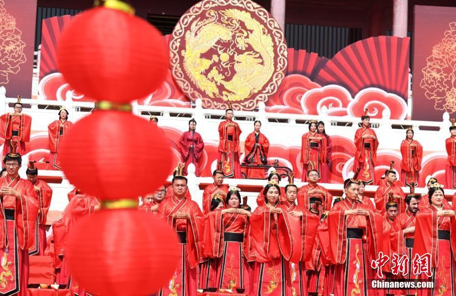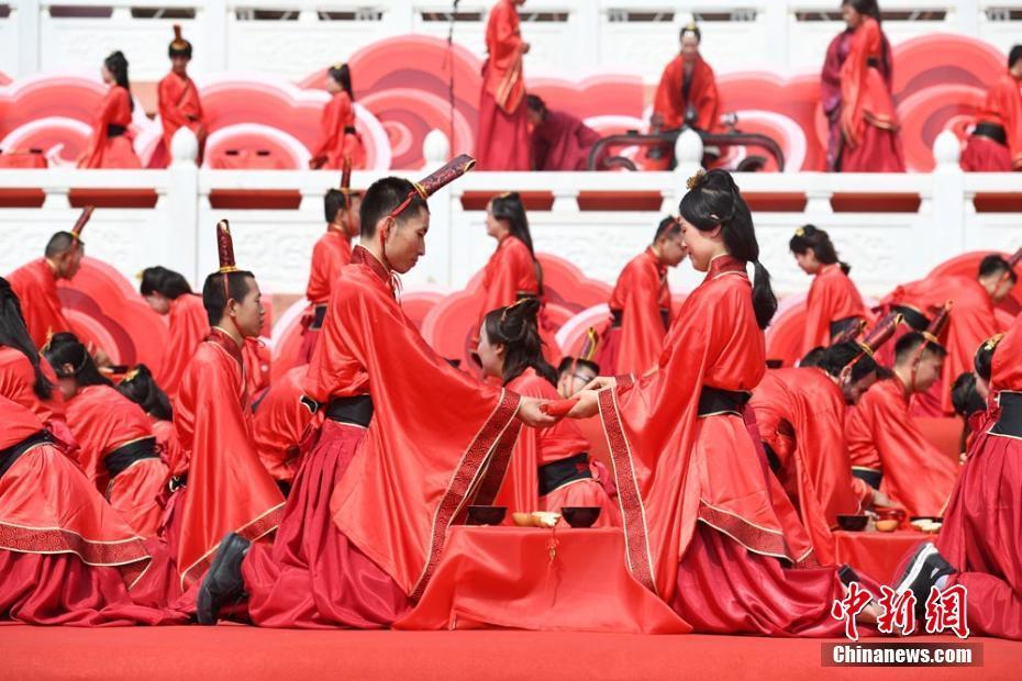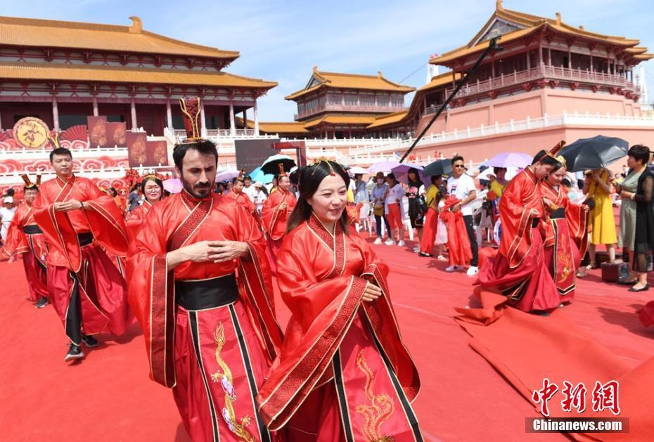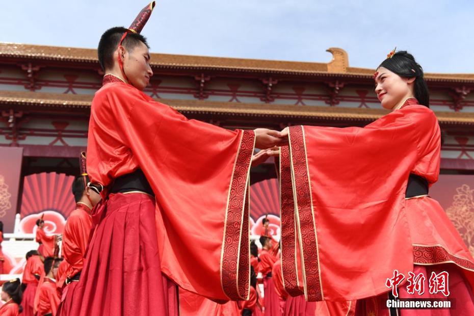 8月(yuè)4日,蘭州新區第二屆“緣定新區築愛一(yī)生(shēng)”集體婚禮在新區長(cháng)城(chéng)西(xī)部影視城(chéng)大明宮舉行。來自(zì)蘭州新區各行各業(yè)的70對新人,在祖國(guó)七十華誕、七夕之約的美好盛夏裡(lǐ)喜結良緣。圖為(wèi)婚禮現場。