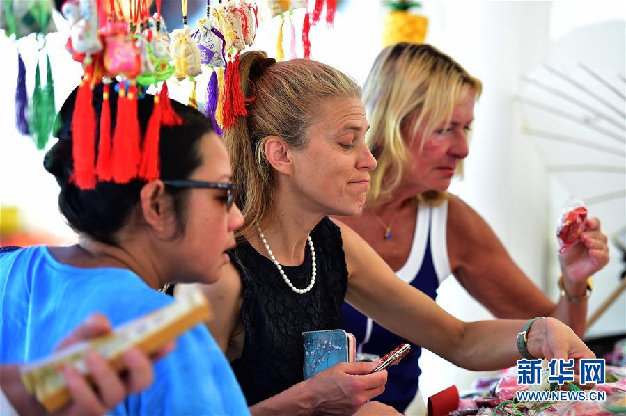 8月(yuè)30日,在德國(guó)法蘭克福,民(mín)衆在“中國(guó)節”上(shàng)選購香囊等中國(guó)傳統飾品。 德國(guó)法蘭克福市(shì)30日迎來“中國(guó)節”。市(shì)中心衛戍廣場上(shàng)的戲曲、武術(shù)、民(mín)族歌(gē)舞、剪紙(zhǐ)、茶藝等富有中國(guó)傳統文化特色的表演以及中國(guó)美食展吸引了大量當地民(mín)衆。