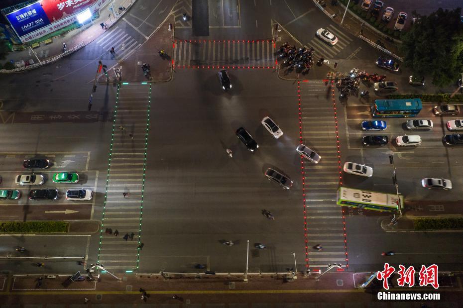 12月(yuè)23日晚,航拍廣西(xī)南(nán)甯雙擁錦春路(lù)口的“發光(guāng)斑馬線”。廣西(xī)首個(gè)“發光(guāng)斑馬線”項目于近日在該路(lù)口啓用,引起各方關注。