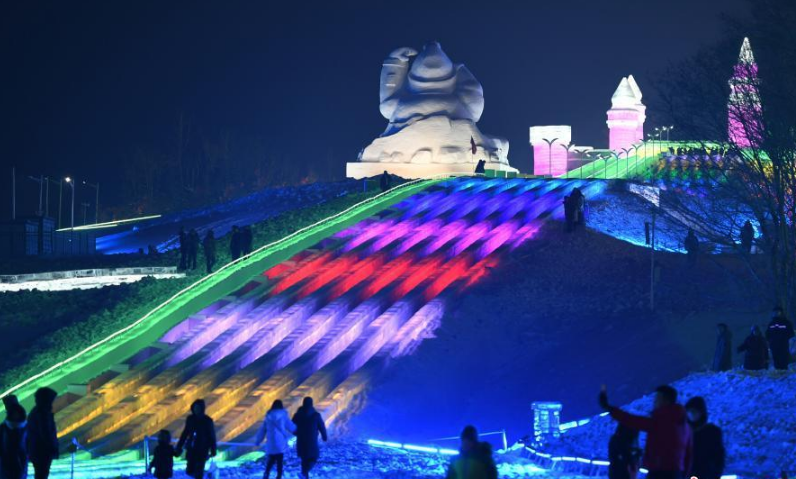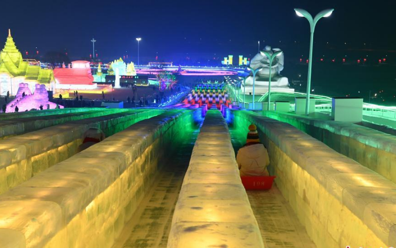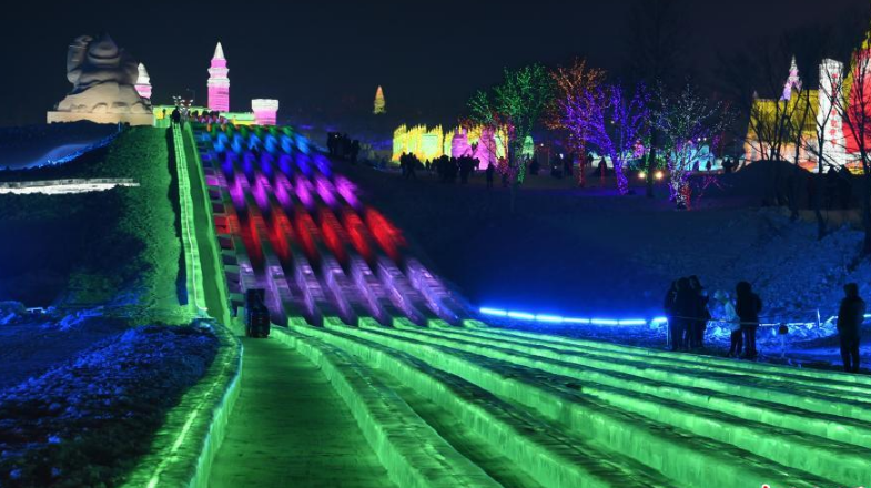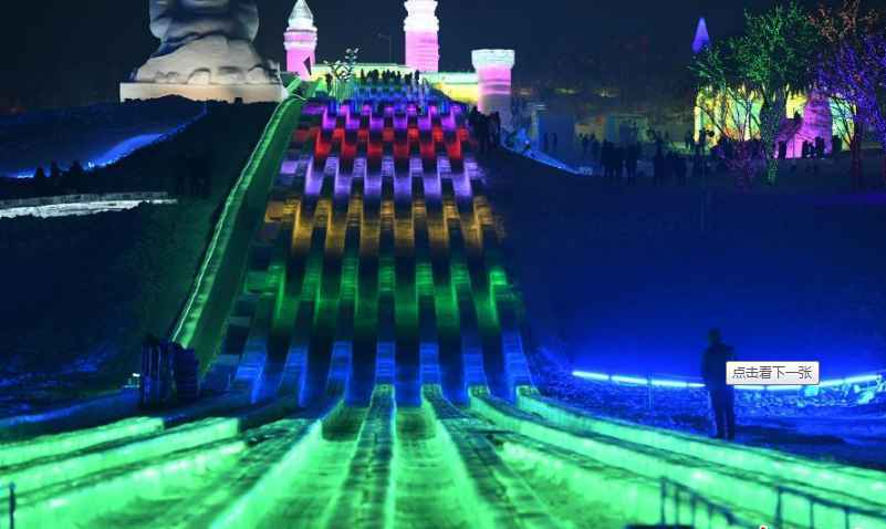 12月(yuè)28日晚,長(cháng)春冰雪大世界開(kāi)門(mén)迎客,遊客體驗420米超長(cháng)冰滑梯。長(cháng)春冰雪大世界總占地108萬平方米,今年(nián)完成80萬平方米,總用冰量、用雪量超過30萬立方米,建造大型冰建、雪景,冰、雪雕等獨立景觀約130處。分為(wèi)冬奧巡禮、冰頌、冰雪情緣、冰雪歡樂島、雪谷霧凇、奇石公園等六個(gè)主題。