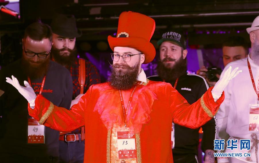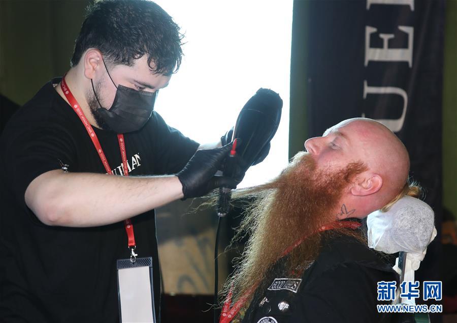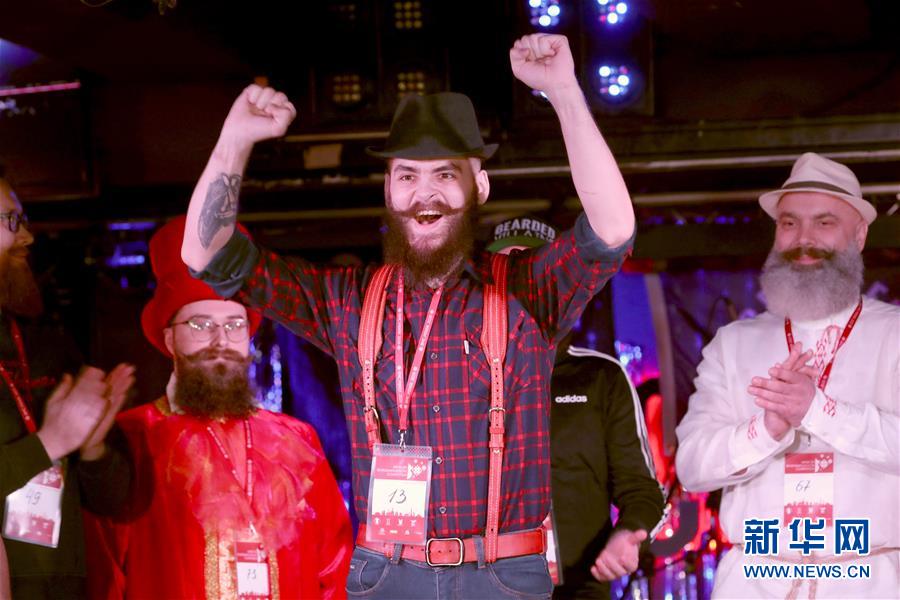2020年(nián)2月(yuè)8日,在白(bái)俄羅斯首都明斯克舉辦的國(guó)際胡須大賽上(shàng),參賽者展示自(zì)己的胡須。