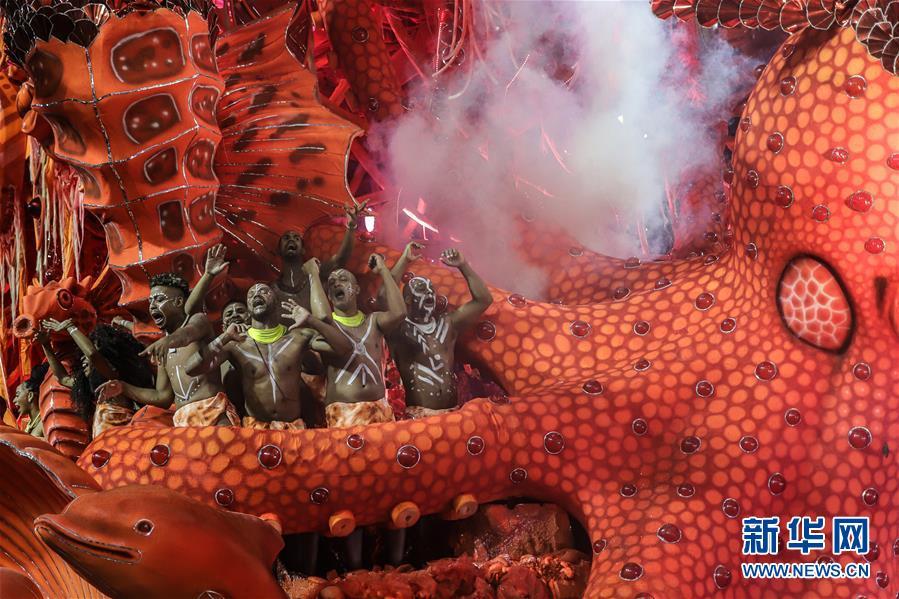 2月(yuè)22日淩晨,巴西(xī)聖保羅桑巴舞校的演員(yuán)參加狂歡節巡遊。 2月(yuè)21日深夜至22日清晨,2020年(nián)巴西(xī)聖保羅狂歡節桑巴舞校巡遊開(kāi)幕,7支特級組桑巴舞校的隊伍在桑巴大道獻上(shàng)精彩表演。在接下(xià)來的三天中,還(hái)會(huì)有7支特級組隊伍、8支甲級組隊伍和12支乙級組隊伍進行表演。