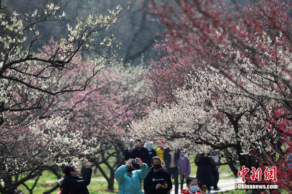 2月(yuè)22日,遊人在南(nán)京東郊梅花山賞梅拍照(zhào)。近日,受新冠肺炎疫情影響而關閉的南(nán)京梅花山開(kāi)放(fàng),“淡妝宮粉”、“粉紅(hóng)朱砂”、“江南(nán)宮粉”等梅花品種陸續盛開(kāi),吸引民(mín)衆前來徜徉花海沐浴春光(guāng)。據悉,為(wèi)确保安全,所有進入景區的人員(yuán)需要佩戴口罩,并進行體溫測量。