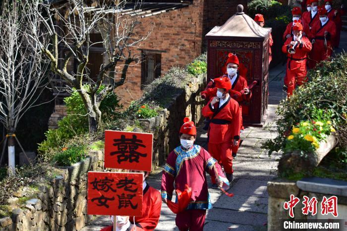 3月(yuè)15日,儀仗隊22人頭戴“老鼠帽”,臉戴畫(huà)著(zhe)“老鼠胡須”的口罩集合出發,村(cūn)民(mín)們扛著(zhe)花轎、油缸、米甕、籮筐、鼠窩等“嫁妝”,将“老鼠”從(cóng)村(cūn)落“遣嫁”到(dào)村(cūn)外。