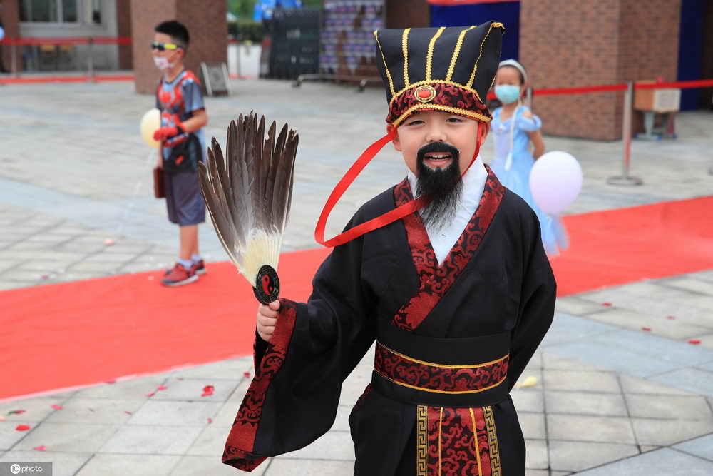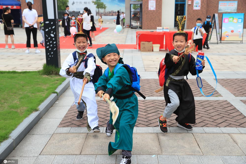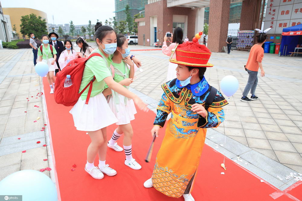 2020年(nián)6月(yuè)1日,浙江甯波,同學們身著(zhe)奇裝異服走進校園。當天,甯波奉化龍津實驗學校舉行“百變模仿秀”活動。一(yī)早,同學們身著(zhe)自(zì)己喜歡的服飾、造型在鋪著(zhe)紅(hóng)毯的校門(mén)口進行走秀,有的是“皇帝”,有的是“蜘蛛俠”,有的是“哪吒……各種人物(wù)形象發揮出孩子們的創意,歡樂過六一(yī)。