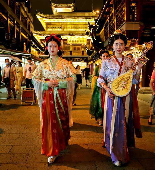 7月(yuè)3日,上(shàng)海豫園内舉行古裝巡遊活動。 從(cóng)7月(yuè)第一(yī)個(gè)周末起,上(shàng)海豫園原有的“豫園六點半”集市(shì)全面升級,煥彩燈光(guāng)、演藝活動和花車集市(shì)全線更新,讓市(shì)民(mín)和遊客在觀燈、觀人、觀演的沉浸式體驗中,享受夏日特色的“食玩”樂趣。