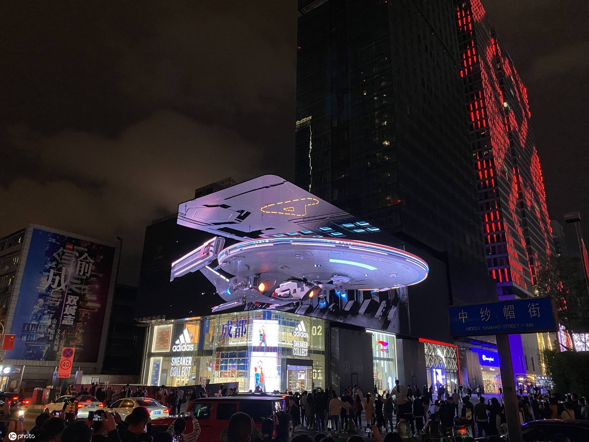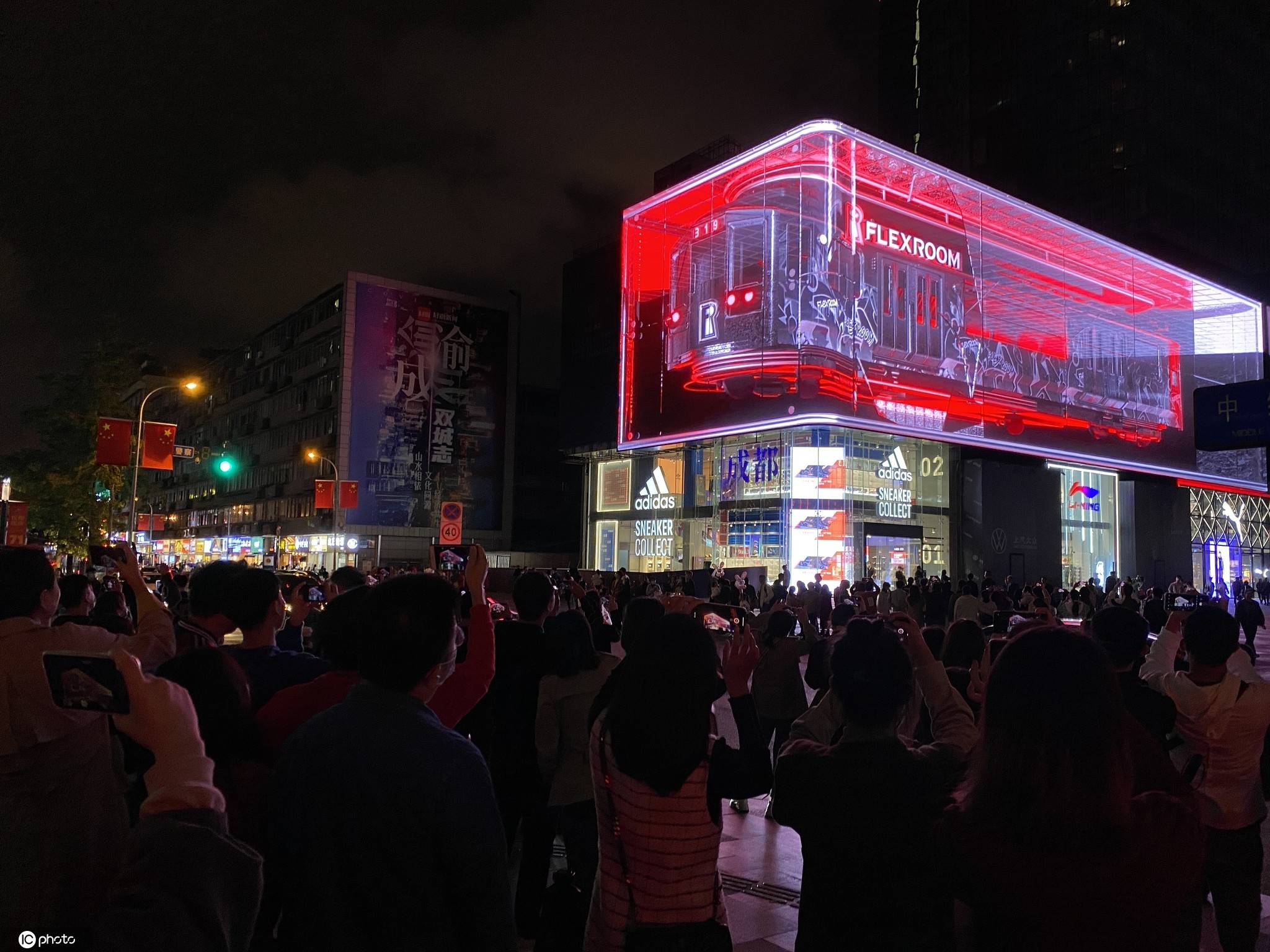 2020年(nián)10月(yuè)5日,成都太古裡(lǐ)裸眼3D大屏爆紅(hóng),遊人排隊打卡。