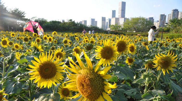 福州花海公園向日葵盛開(kāi),吸引民(mín)衆前來遊玩。