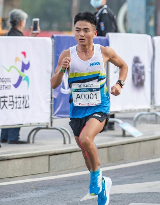 11月(yuè)15日,獲得男子全程馬拉松亞軍的趙浩在比賽中。
