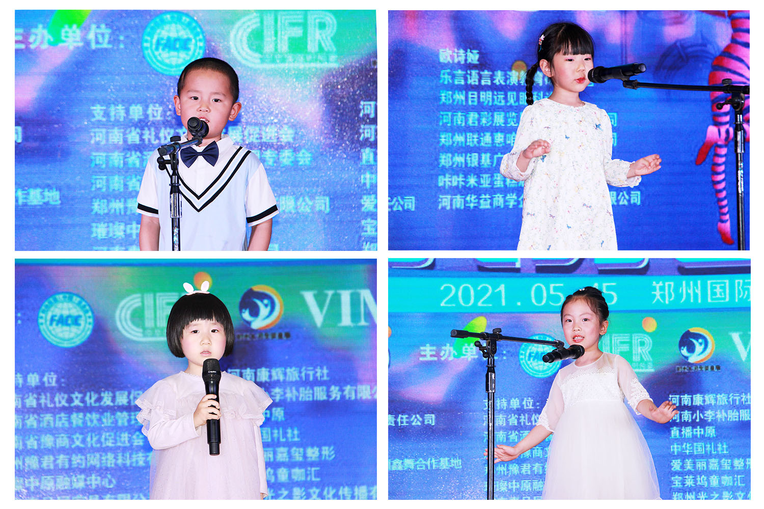 本次活動也得到(dào)了許多(duō)單位的大力支持,中國(guó)藝術(shù)教育中心指導,時尚聯盟(中國(guó))委員(yuán)會(huì)、CIFR中國(guó)賽區組委會(huì)、鄭州大河孕嬰童展組委會(huì)、VIMC中國(guó)賽區組委會(huì)聯合主辦;河南棗樹文化傳媒有限公司承辦;河南(nán)芝麻花會(huì)展服務有限責任公司、河南(nán)知青文化發展中心、河南(nán)廣播電(diàn)視台少兒藝術(shù)培訓鑫舞合作基地、阿諾杉藝術(shù)培訓學校、鄭州市(shì)音(yīn)樂之光(guāng)藝術(shù)團、河南(nán)省小(xiǎo)明星藝術(shù)團、璀璨童星藝術(shù)園、華語紛揚語言藝術(shù)教育聯合協辦,感謝他們對活動的大力支持。同時感謝朱素玲、王偉、賈安建、魯發榮、王勝利、鄧長(cháng)州、胡寶劍、李瑞宏、王霞、楊紅(hóng)偉這一(yī)批優秀的志(zhì)願者們,為(wèi)本次彙演做出的貢獻。2021第2屆中華國(guó)際時尚賽少兒才藝彙演圓滿落幕!
