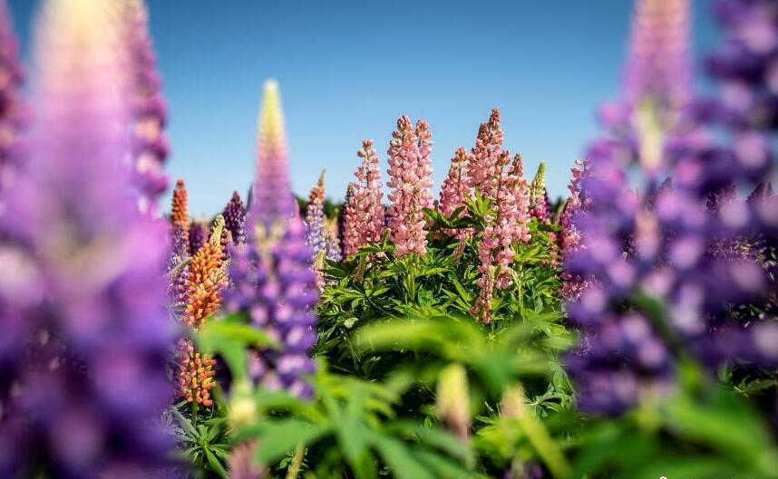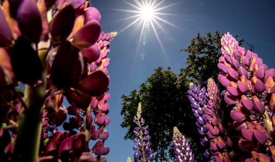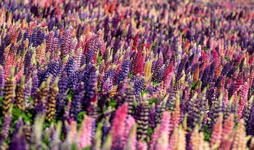 6月(yuè)8日,丹麥洛蘭島魯冰花盛開(kāi),陽光(guāng)照(zhào)耀之下(xià)一(yī)片姹紫嫣紅(hóng)。