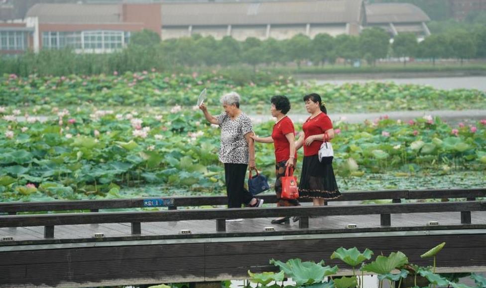 6月(yuè)18日在蓮花湖(hú)公園内拍攝的盛開(kāi)的荷花。時下(xià),位于江蘇省南(nán)京市(shì)雨花台區的蓮花湖(hú)公園内大片荷花陸續盛開(kāi),吸引不少市(shì)民(mín)賞花休閑。