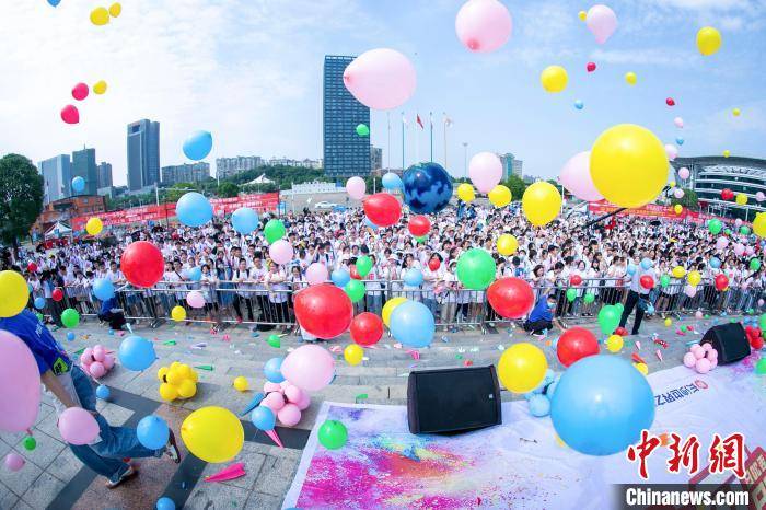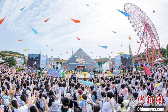 6月(yuè)23日,4000名剛結束中考的畢業(yè)生(shēng)在長(cháng)沙世界之窗(chuāng)放(fàng)飛(fēi)紙(zhǐ)飛(fēi)機(jī)與氣球,并進行青春四溢的“畢業(yè)生(shēng)彩虹跑”,用體育運動告别他們的初中時代。